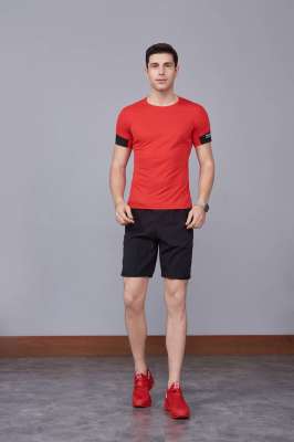 男裝新款情侶裝純色T恤 男上衣潮純棉圓領 短袖T恤 紅色